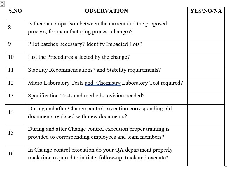 14. Pilot batches necessary? and Identify Impacted Lots?